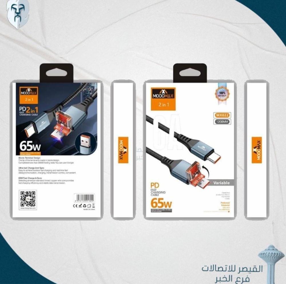 كيبل شاحن سريع قماش 2*1 Type-C lk من موج ماكس